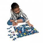 These robots are having a grand old time in their outer space home, illustrated by Kevin Hawkes. Puzzles are the perfect project for little hands! The process of piecing together a puzzle aids in the development of pattern, shape, and color recognition. Children feel challenged by the task, and proud of its completion! eeBoo puzzles are printed on recycled greyboard using vegetable-based ink, so parents can feel confident in the quality and safety of each set. This 64-piece puzzle is perfect for children age 5 and older.
